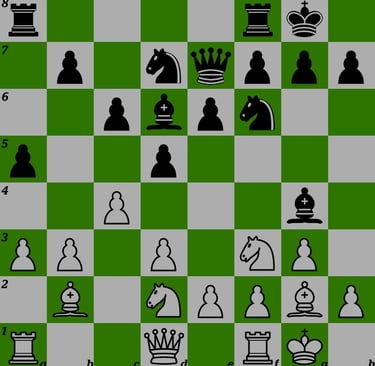 This position shows an example of which shape the previous one might take. Both sides still have to develop their heavy pieces. Meanwhile, further significant pawn moves are not to be expected in the near future.
