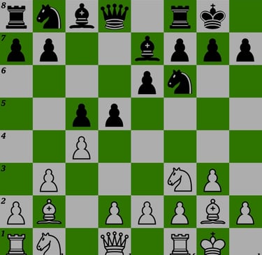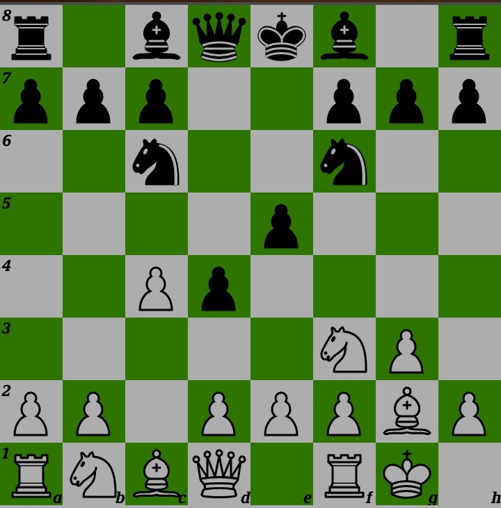 Here, Black’s strong pawn center looks different, since the c-pawn has advanced two squares while the epawn has been held back. Furthermore, White has chosen a different fianchetto. The attack on the opposing center will be carried out with c2- c4